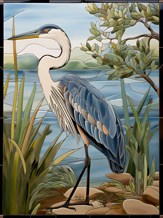 Blue Heron Ceramic Tile Murals. Set of 2.