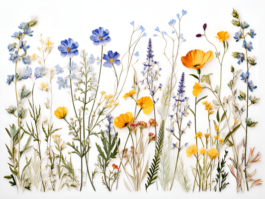 A set of 8" by 6" Field Flowers Ceramic Tiles or a 12" by 24" mural.