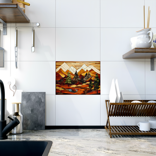 Ceramic Nature Tile or Mural. Mountains Ceramic Tile Backsplash.