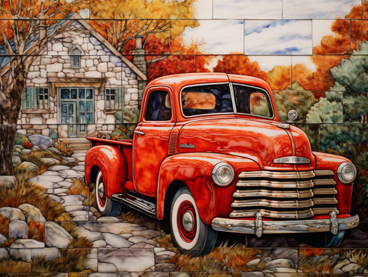 Ceramic Old-Fashioned Truck Tiles. Set of 4.