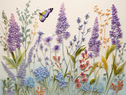 Butterfly in a field of Wildflowers Mural and Lavender Tile Set.