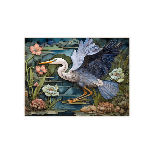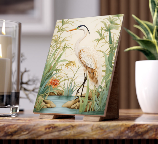 Flying Heron Ceramic Tile or Mural. Blue Heron Flying Backsplash.