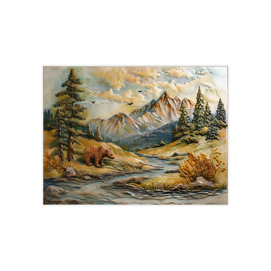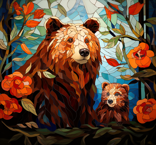Mama bear and her cub ceramic tile mosaic backsplash.