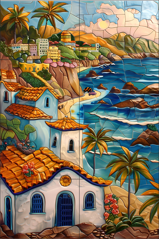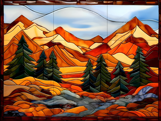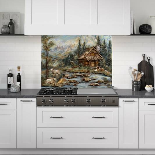 Mountain Log Cabin Ceramic Tile Mural. Herding Dog with Sheep Ceramic Kitchen Backsplash.