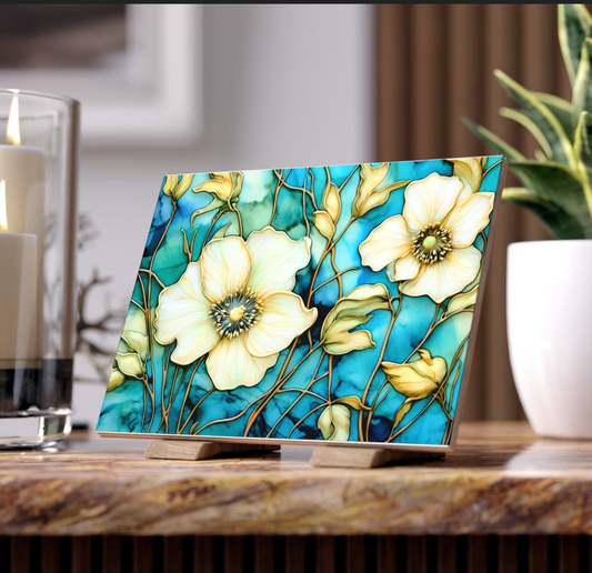 White Wildflowers Ceramic Accent Tile or Mosaic.