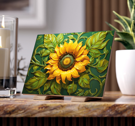 Sunflower Ceramic Tile, Floral Ceramic Tile, Sunflower Accent Tile