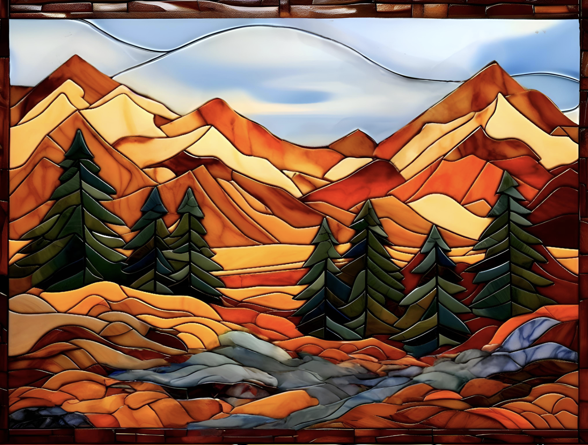 Mountain Terrain Ceramic Tile Mosaic.
